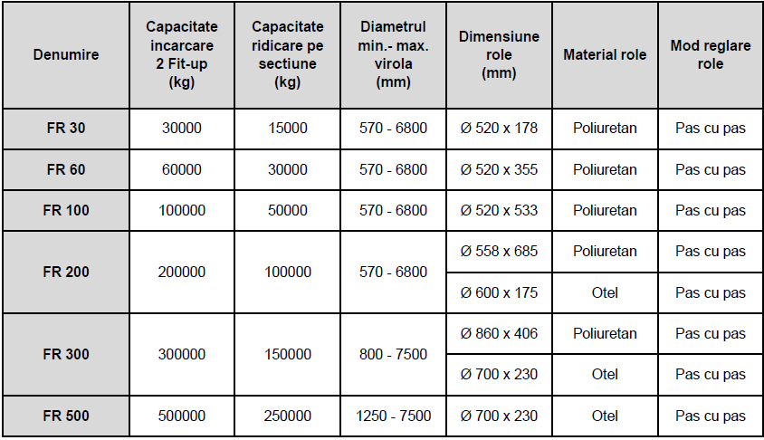 Alegerea capacitatii se face in functie de greutatea piesei de ridicat: (de exemplu, daca piesa are greutatea de 30 de tone, trebuie ales un TR30; capacitatea de ridicare este de 15 tone pentru un rotator).