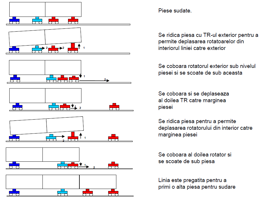 Permit reglarea pozitiei pieselor ce urmeaza a fi sudate, una fata de cealalta. Reglarea se face prin ridicarea / coborarea rolelor.